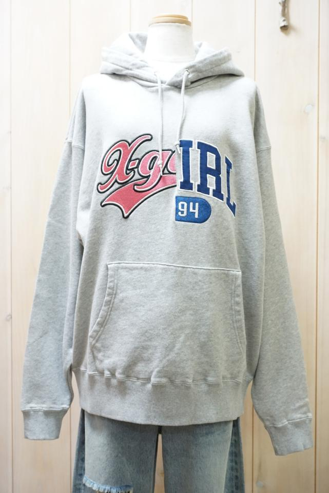 X-girl エックスガール 105253012016 MIX COLLEGE LOGO SWEAT HOODIE パーカー BLACK 正規通販 レディース