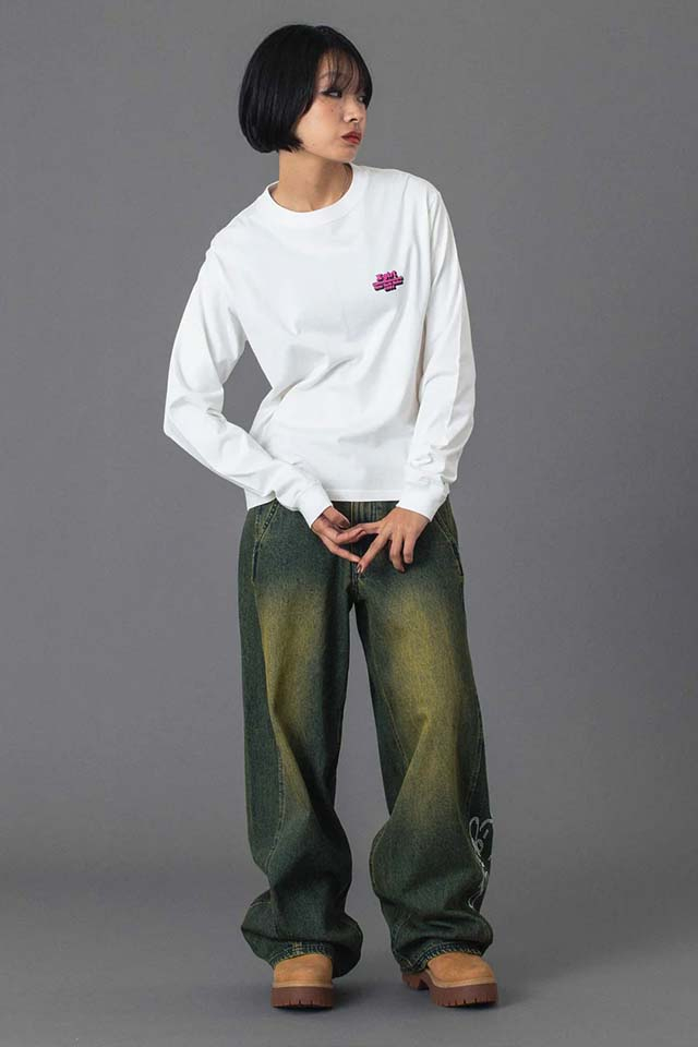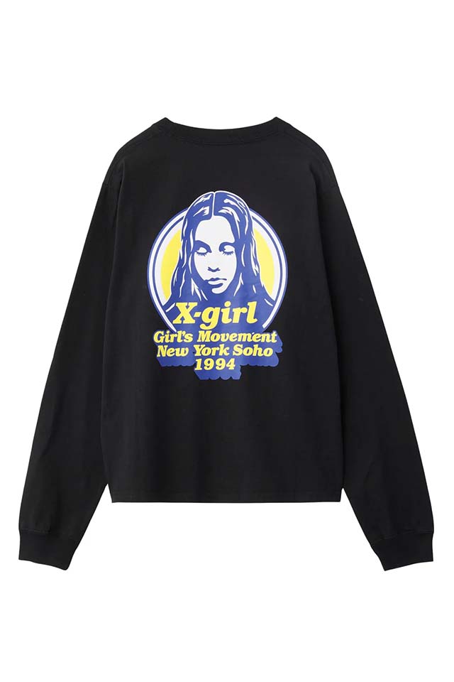 X-girl エックスガール 105254011004 MESSAGE AND FACE CIRCLE LOGO L/S TEE Tシャツ BLACK 正規通販 レディース