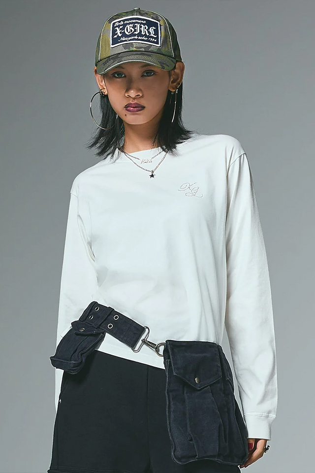 X-girl エックスガール 105254011007 RHINESTONE COMBINATION LOGO L/S TEE Tシャツ BLACK 正規通販 レディース