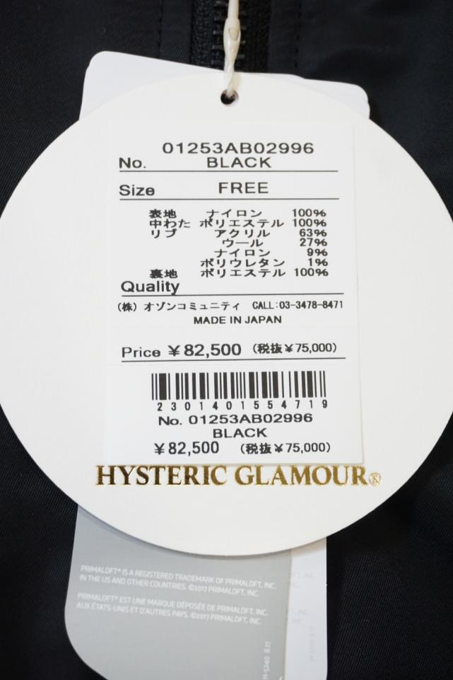 HYSTERIC GLAMOUR ヒステリックグラマー 01253AB06 FIRE BEAR刺繍 フェイクファーブルゾン BLACK 正規通販 レディース