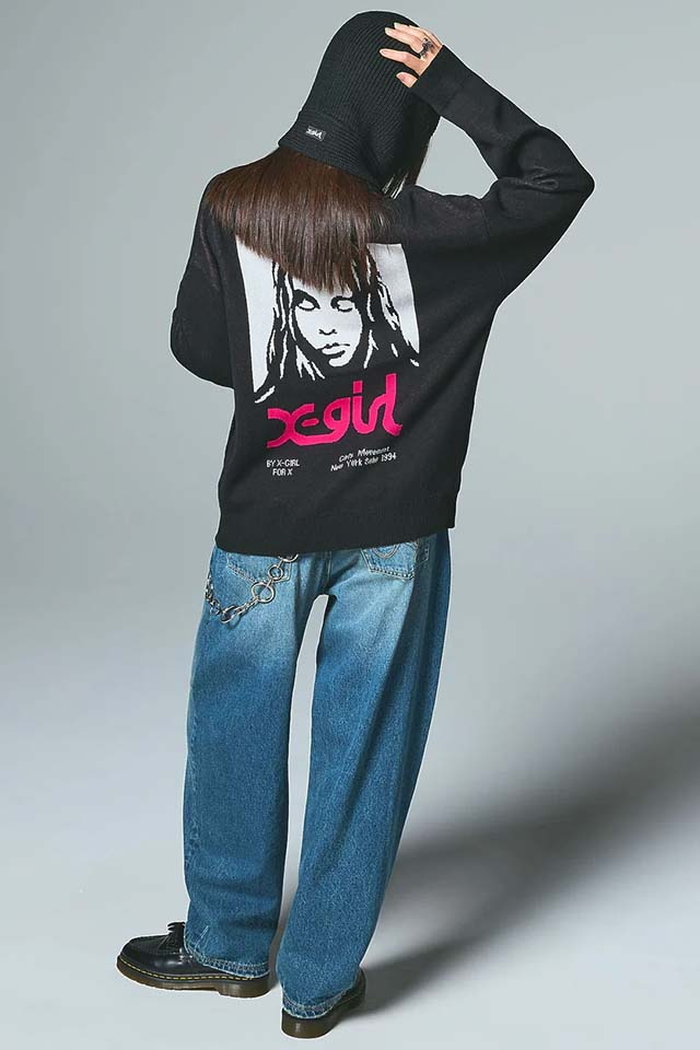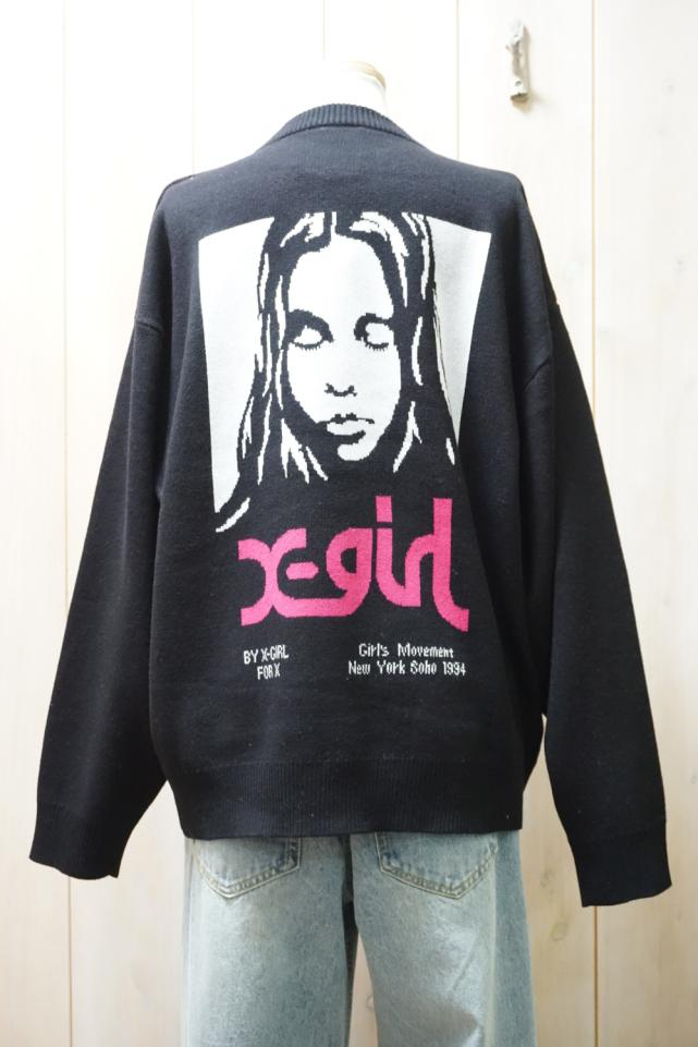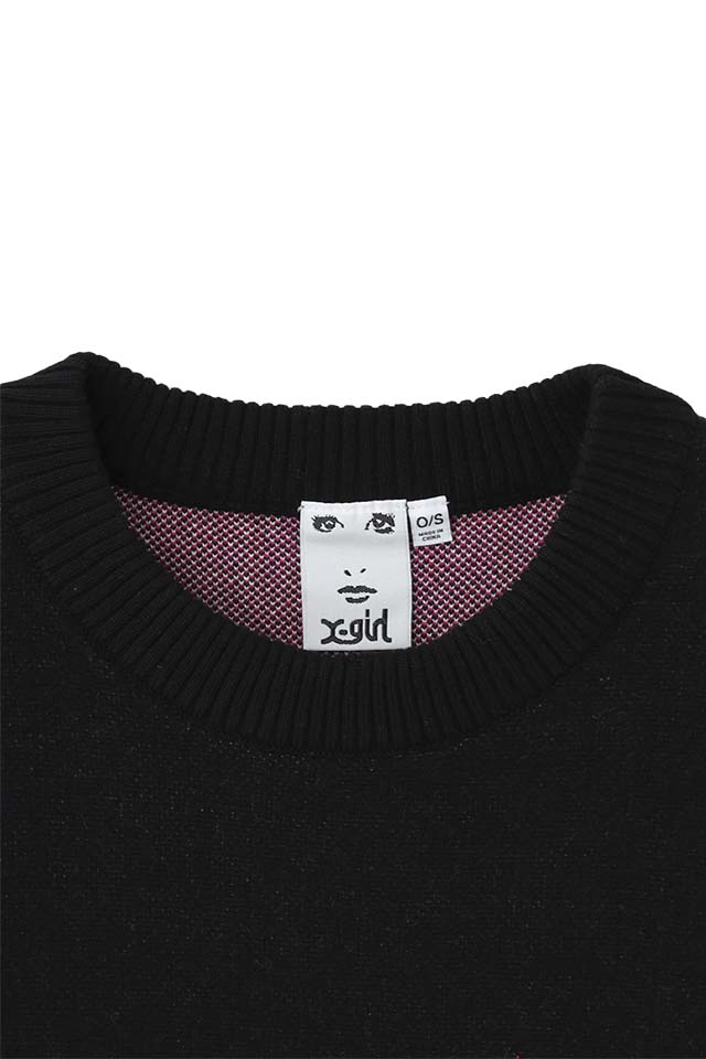 X-girl エックスガール 105254015015 FACE JACQUARD KNIT TOP フェイスジャガードニット WHITE 正規通販 レディース