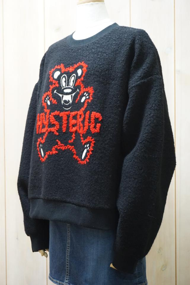 HYSTERIC GLAMOUR ヒステリックグラマー 01253CS03 FIRE BEAR刺繍 オーバーサイズスウェット TOP GRAY 正規通販 レディース