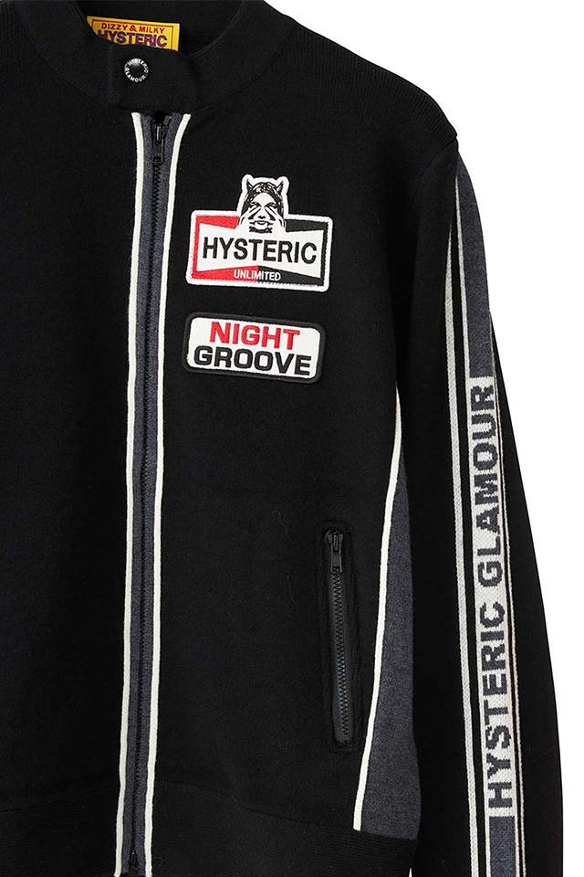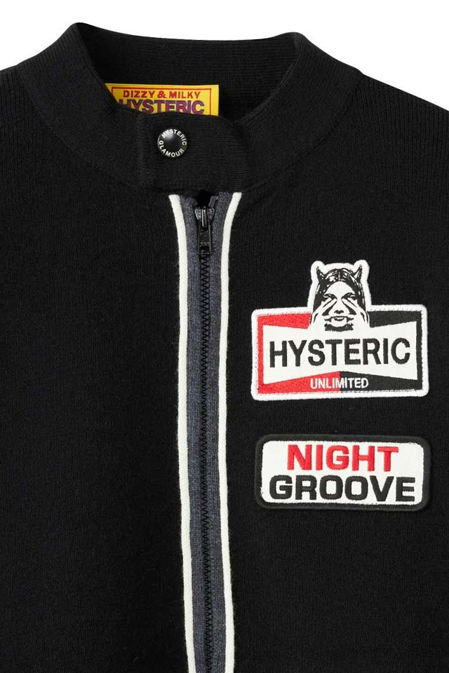 HYSTERIC GLAMOUR ヒステリックグラマー 01253AB06 FIRE BEAR刺繍 フェイクファーブルゾン BLACK 正規通販 レディース