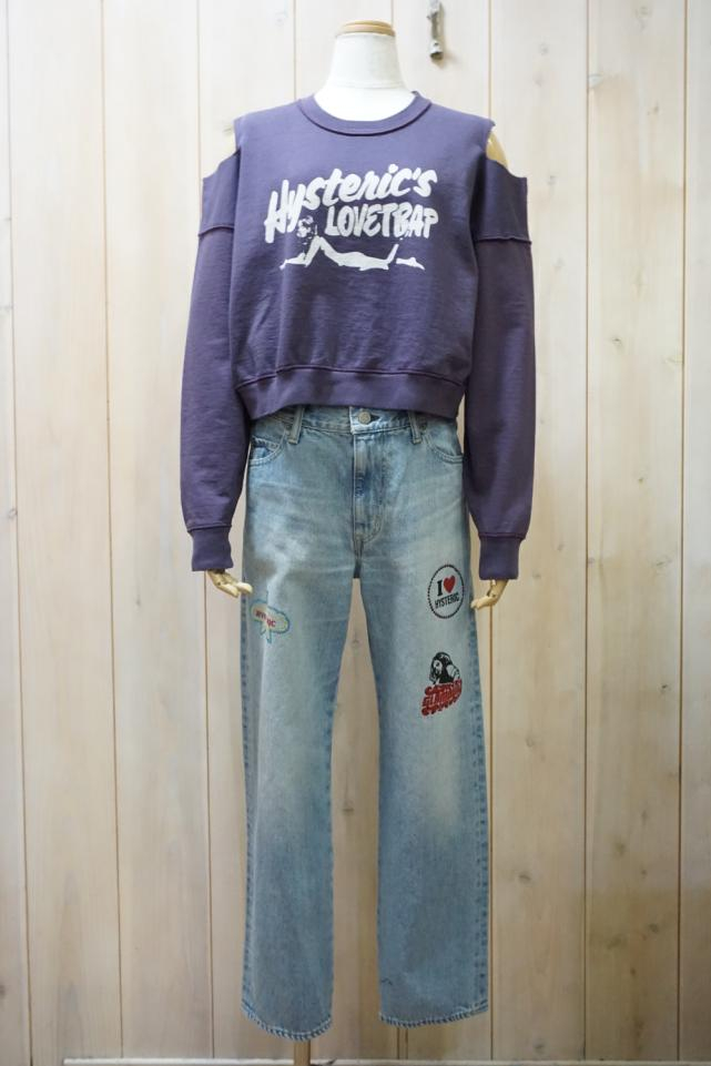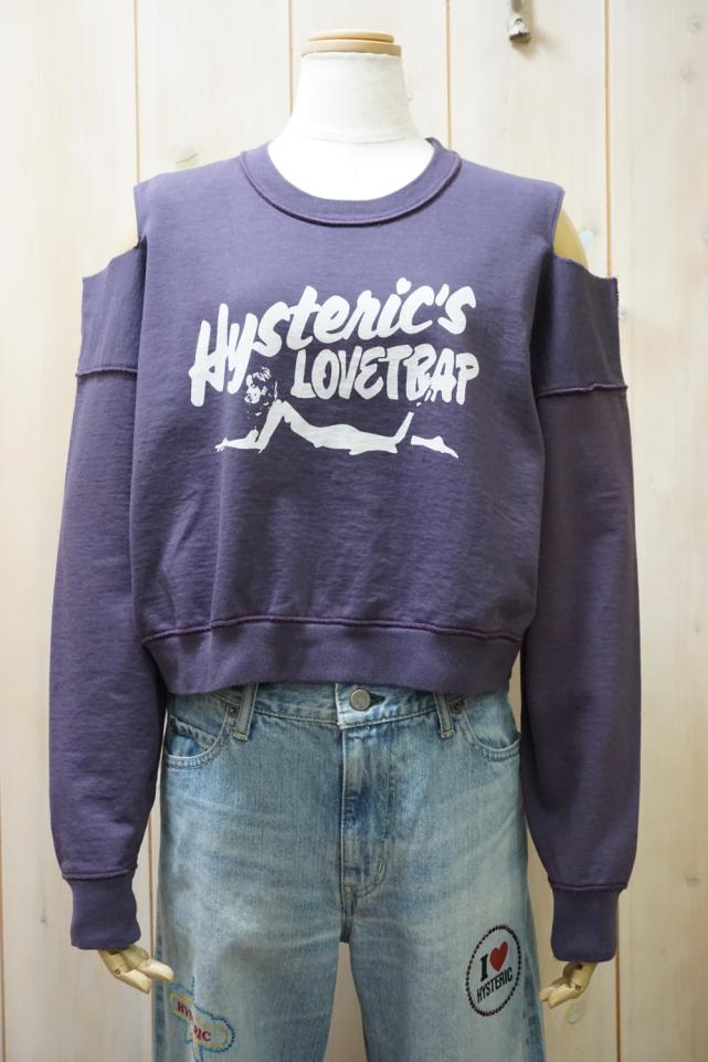 HYSTERIC GLAMOUR ヒステリックグラマー 01261CS01 HYSTERIC’S LOVETRAP ショート丈スウェット BLACK 正規通販 レディース