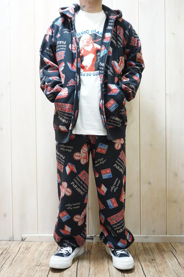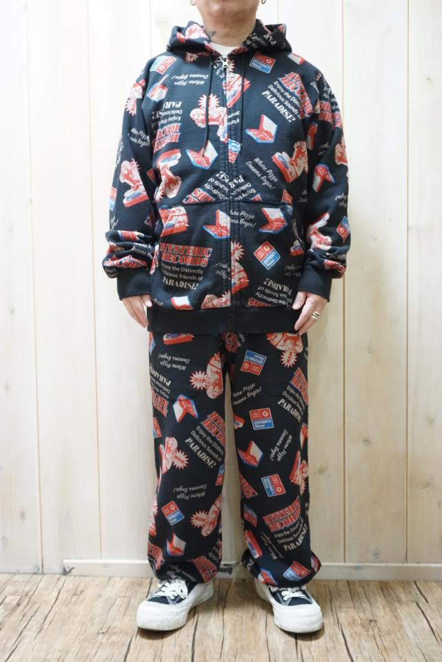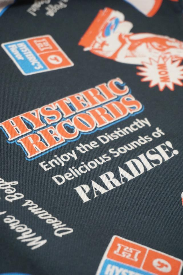 HYSTERIC GLAMOUR ヒステリックグラマー 02261CF02 HYSTERIC RECORDS柄 パーカー BLACK 正規通販 メンズ
