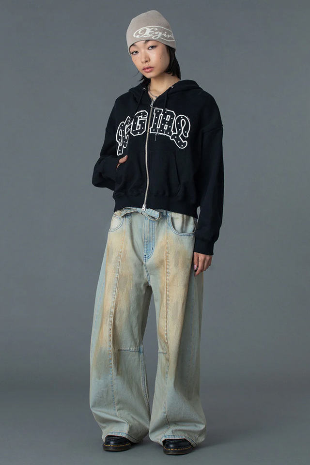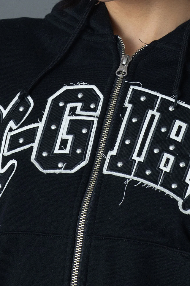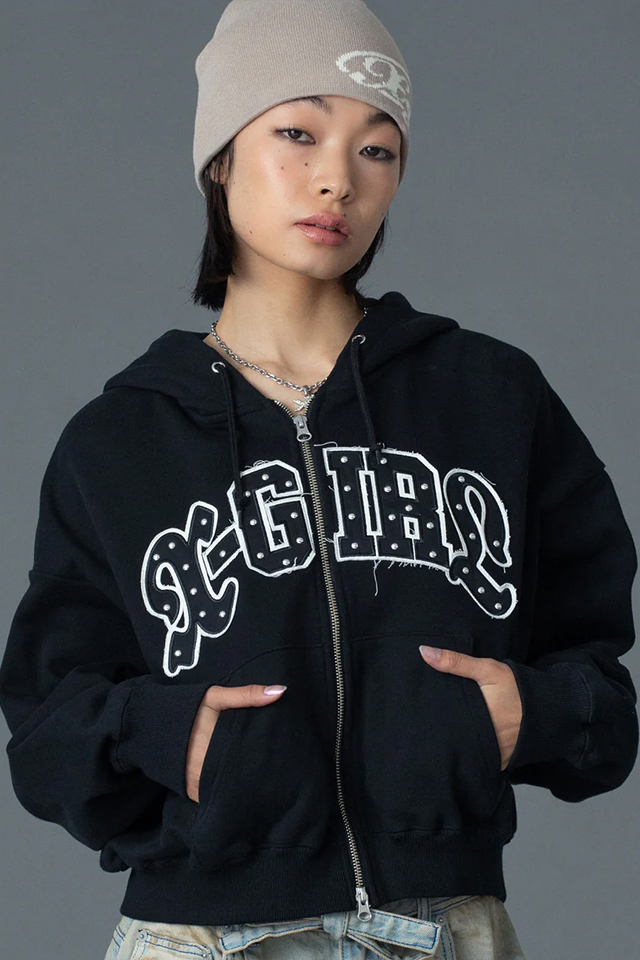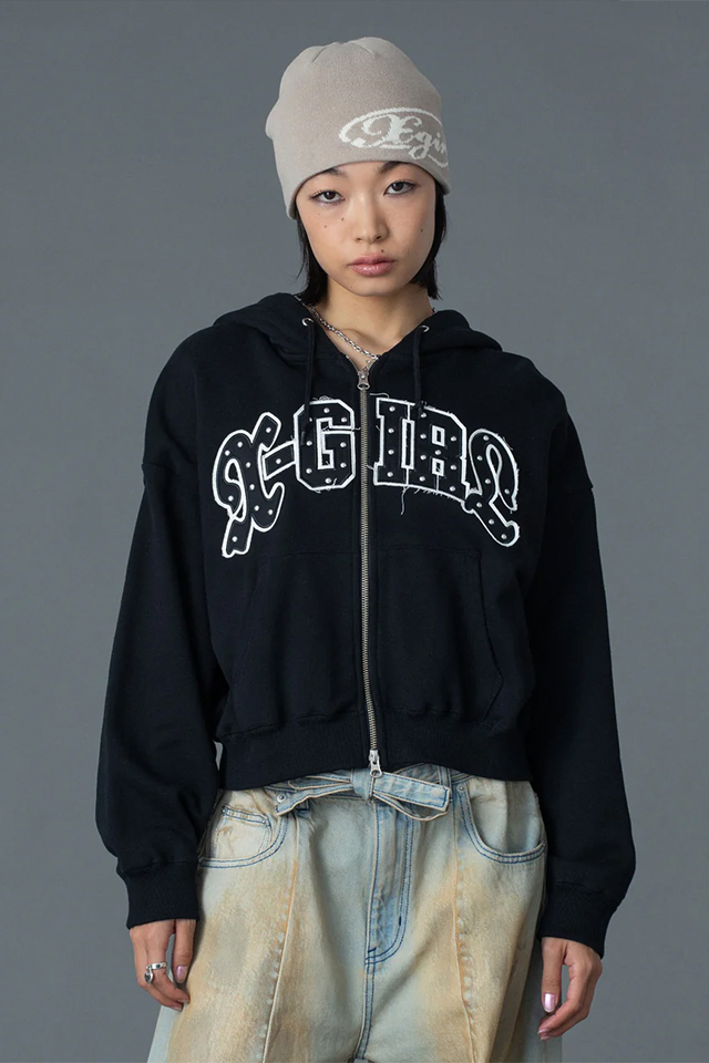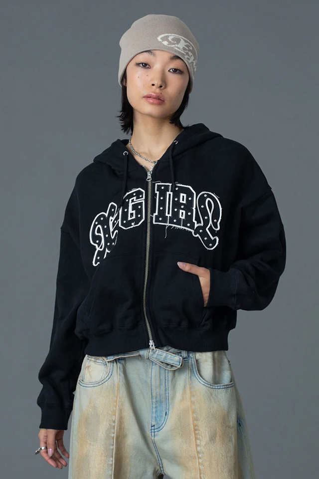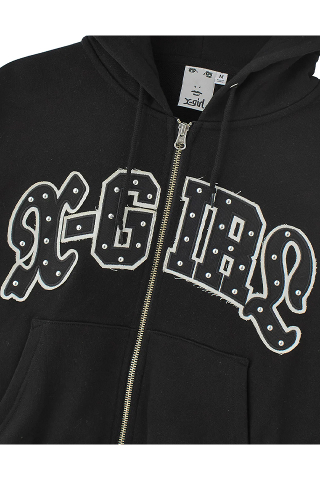 X-girl エックスガール 105261012005 STUDDED LOGO ZIP UP SWEAT HOODIE ジップパーカー OLIVE 正規通販 レディース
