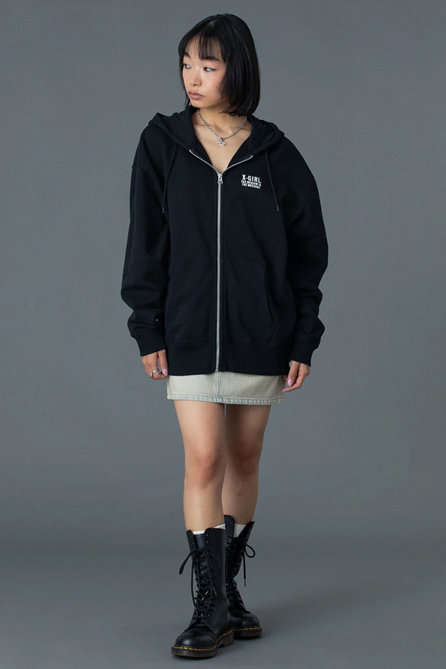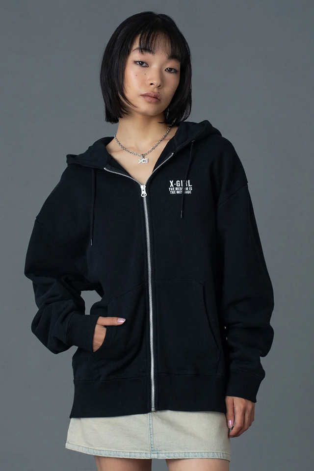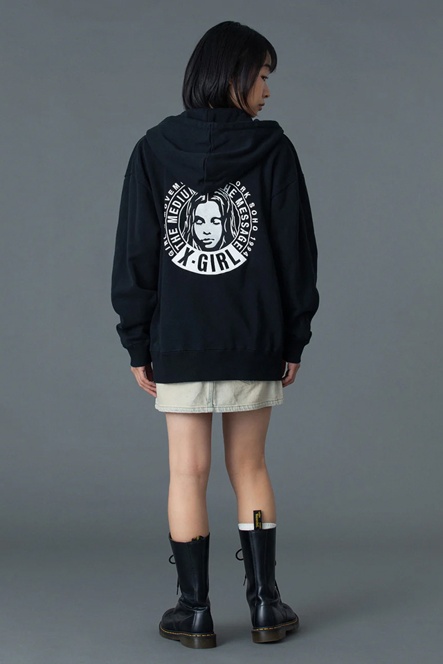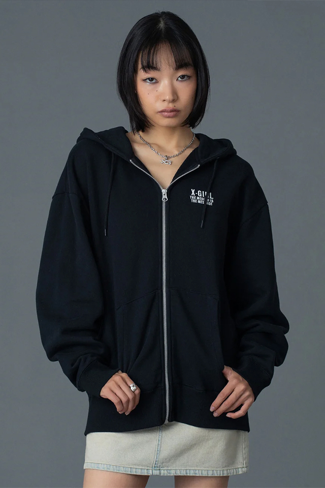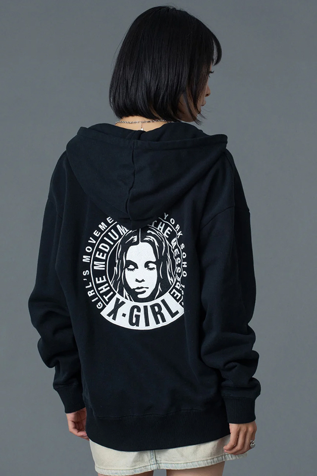 X-girl エックスガール 105261012016 CIRCLE MESSAGE AND FACE ZIP UP SWEAT HOODIE ジップパーカー ASH 正規通販 レディース