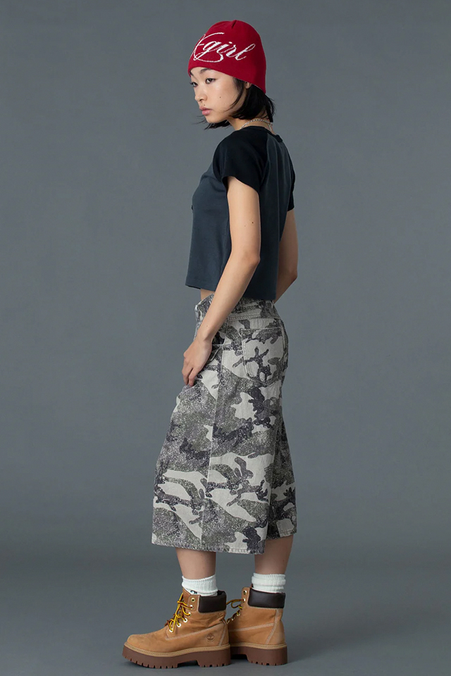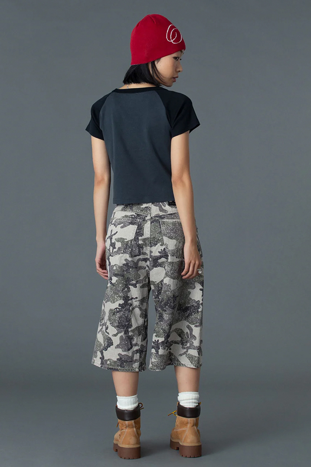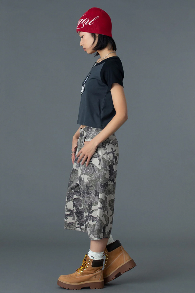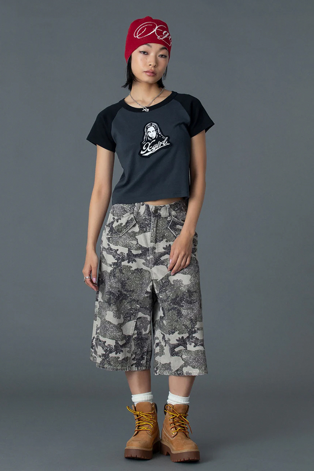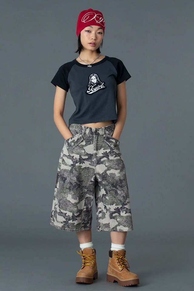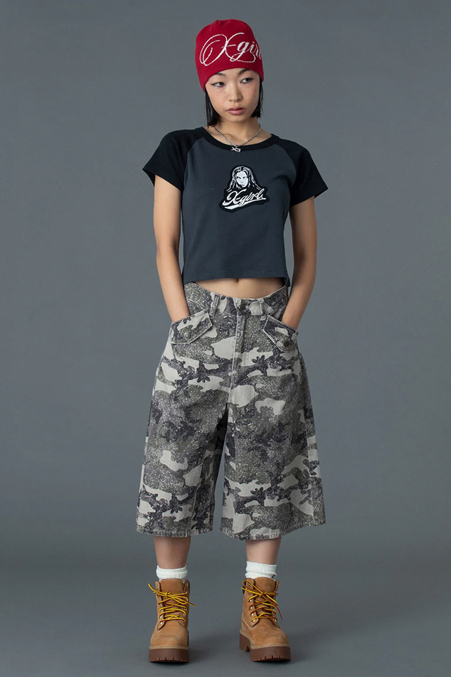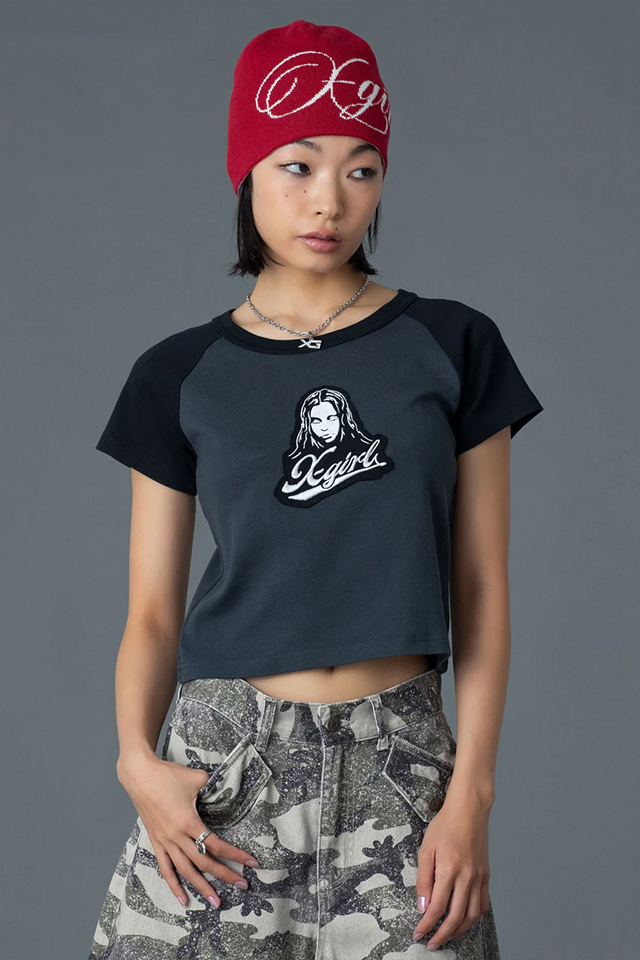 X-girl エックスガール 105261011009 FACE EMBROIDERED PATCH RAGLAN S/S BABY TEE ベビーTシャツ WHITE 正規通販 レディース