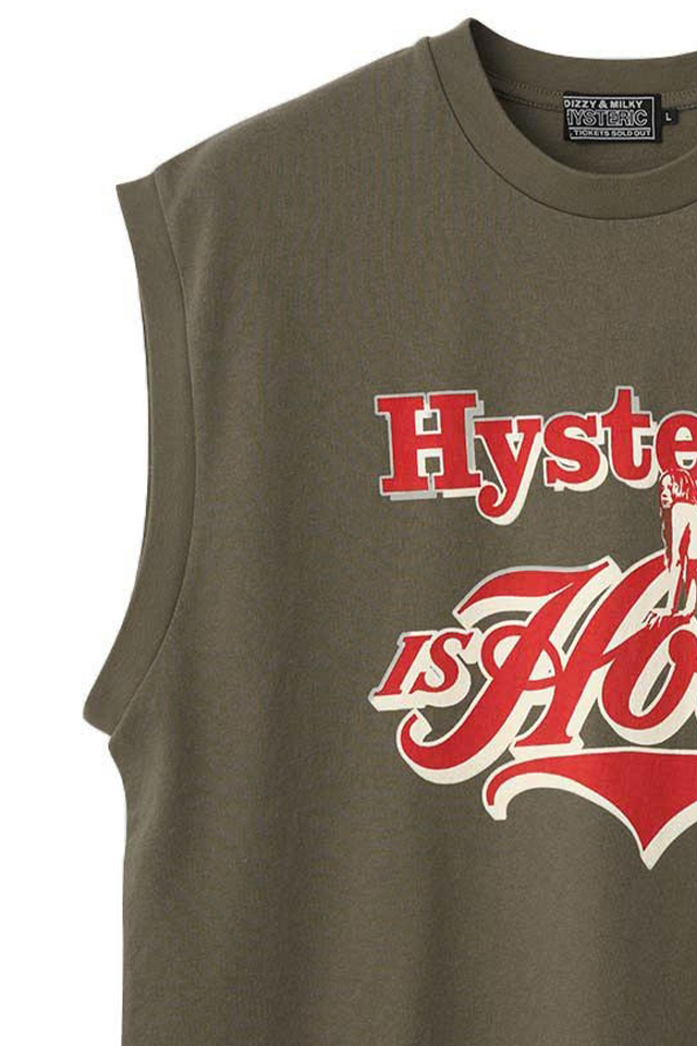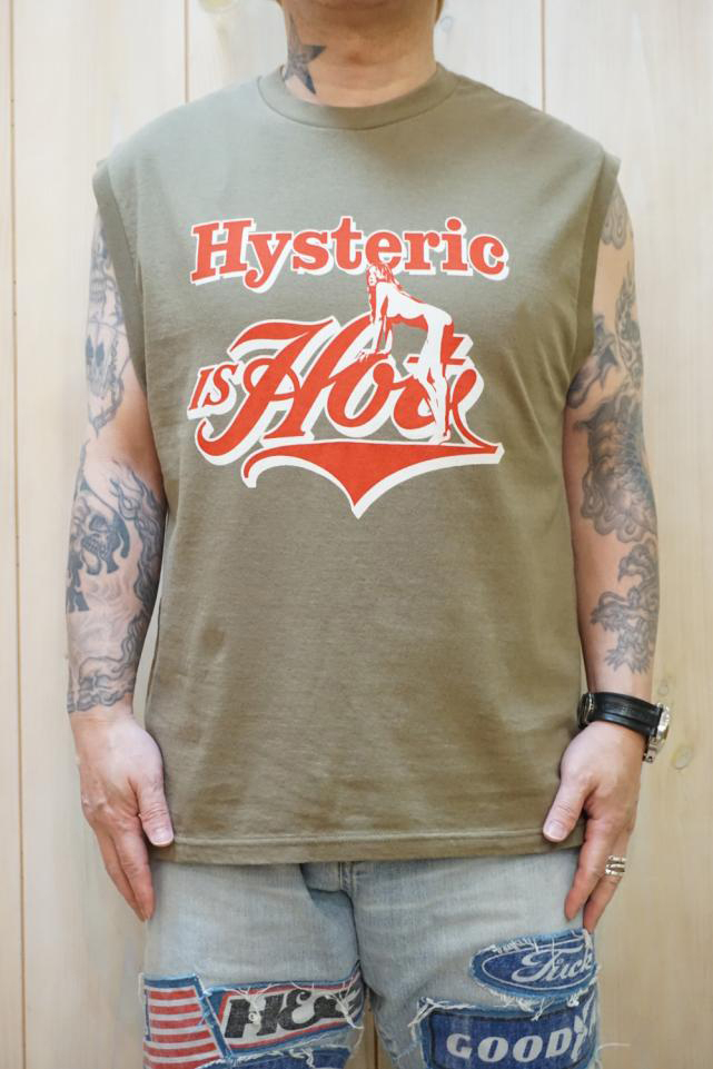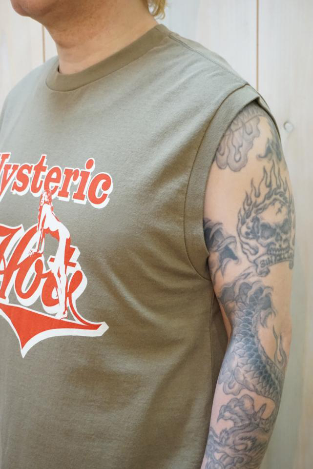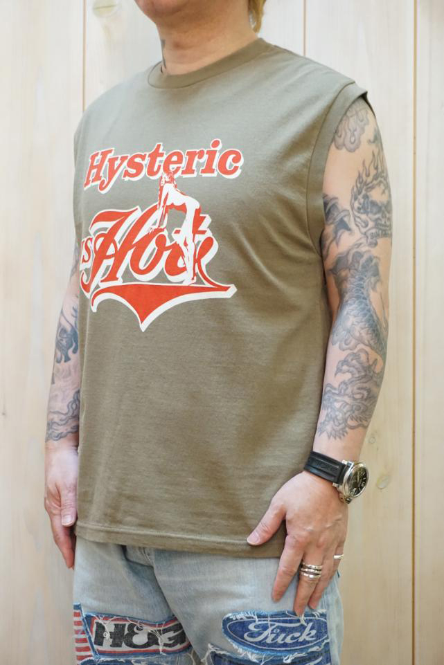 HYSTERIC GLAMOUR ヒステリックグラマー 02261CR01 HYSTERIC IS HOT ノースリーブTシャツ BLACK 正規通販 メンズ